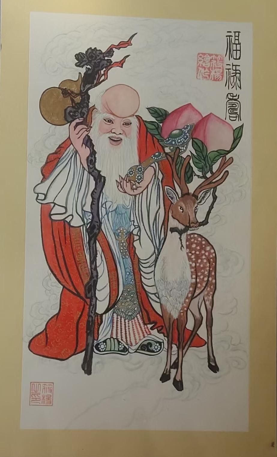 色彩运用上,筱杨老师采用了鲜艳的红、蓝、绿、黄等传统吉祥色调,使画面呈现出喜庆欢快的气息,同时又通过色彩的搭配和明暗对比,使人物和物件在视觉上更加突出,增强了作品的层次感和感染力。尤其是孩童衣物上的纹理和装饰,既体现了民间美术的细腻工艺,又增添了作品的趣味性和观赏价值。