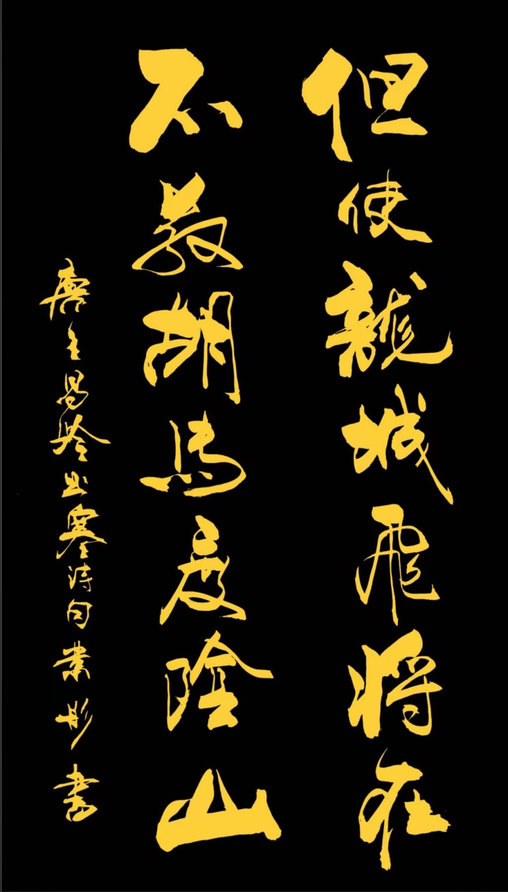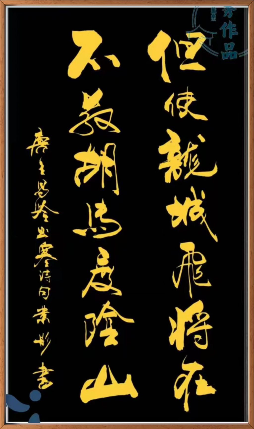 程业彤老师的这幅《出塞》书法作品,以独特的黑底金字呈现,极具视觉冲击力,给人以厚重而典雅的美感。整幅作品笔力遒劲,气势磅礴,既展现了书法艺术的风采,又传递了诗句所蕴含的壮志豪情,令人一见倾心,回味无穷。