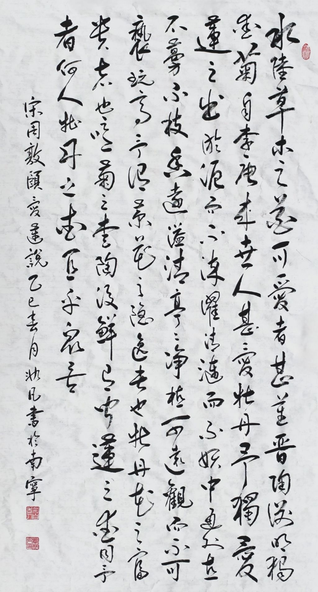 总体而言,覃非凡老师的《岳阳楼记》无论是在字形结构、用笔力度,还是墨色运用、布局安排上,都展现了极高的书法技艺和艺术修养。这幅作品不仅体现了《岳阳楼记》所承载的历史文化意义,也以其独特的书法魅力为古文注入了现代艺术的生命力。恭喜覃非凡老师在众多作品中脱颖而出,获特等奖实至名归!期待他在未来的书法创作中,能够继续探索和突破,带来更多富有张力和深度的作品。